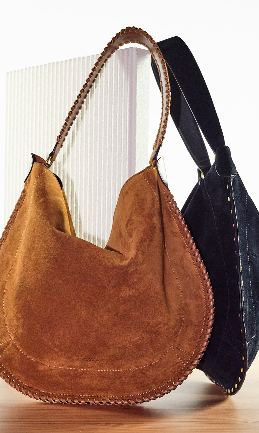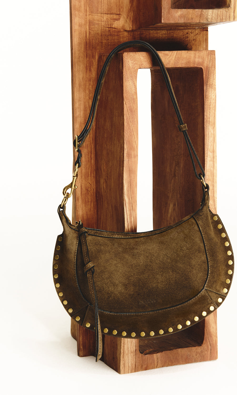 Verlieben Sie sich in die ikonische Oskan Moon Bag. Dieses Must-have vereint Isabel Marants charakteristische Nietenästhetik mit weichen Leder- oder Wildleder-Oberflächen, die mit einzigartigen Details verziert sind.