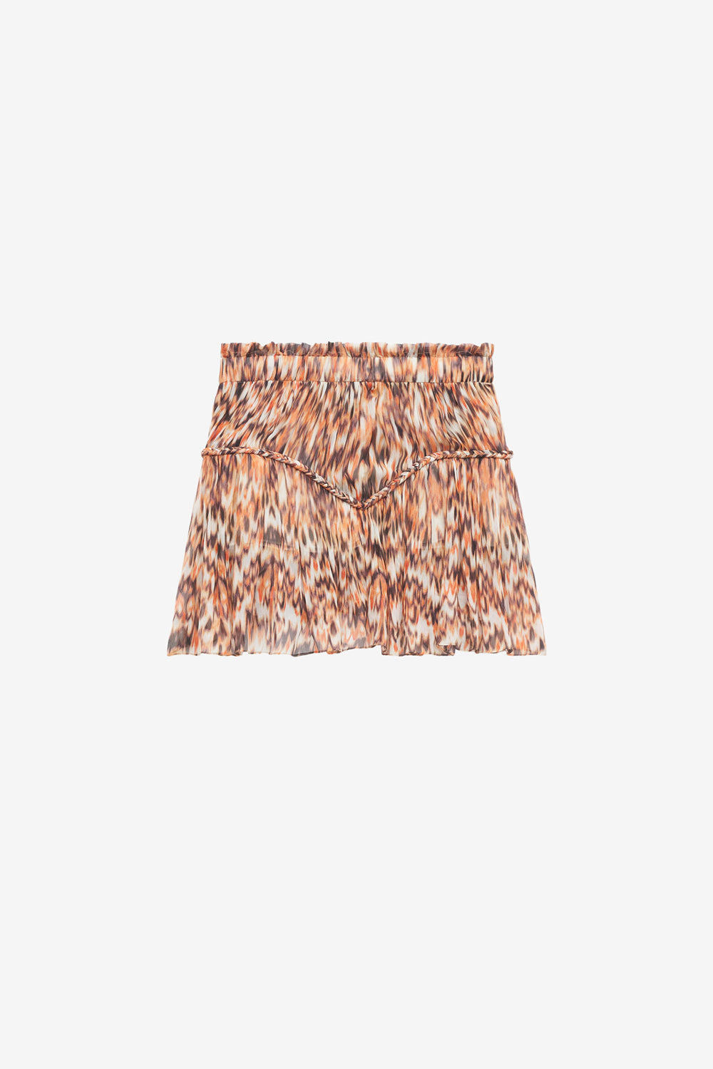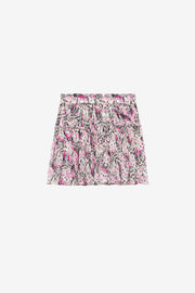 Kurzer Rock aus geraffter Seide mit aufgedrucktem Butterfly-Motiv