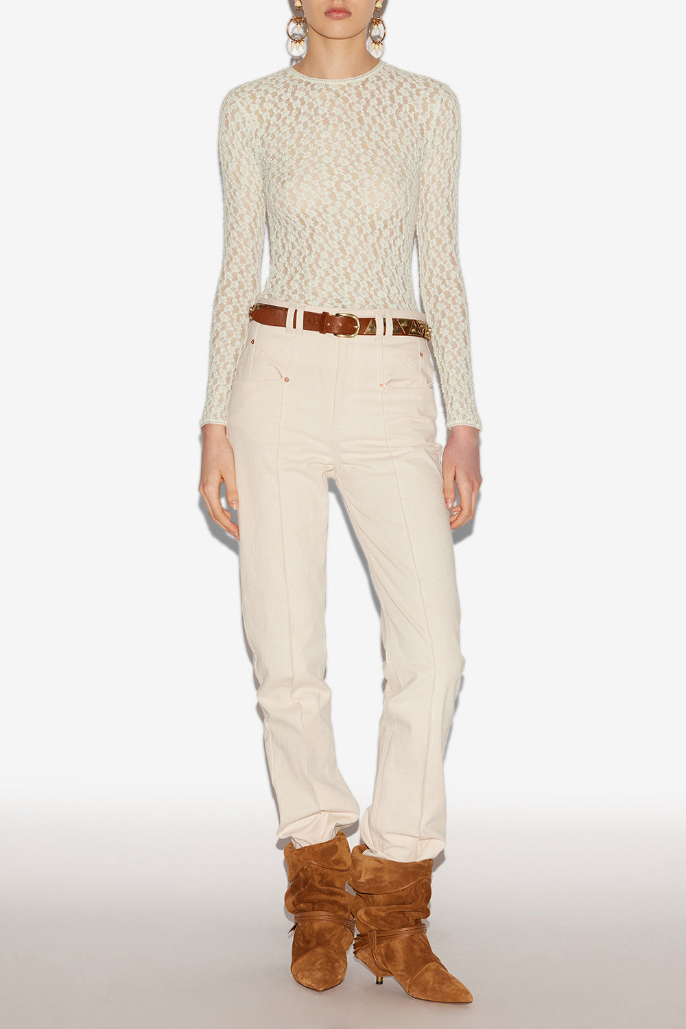 Einfarbiges Top aus elastischer Spitze mit Blumenmuster