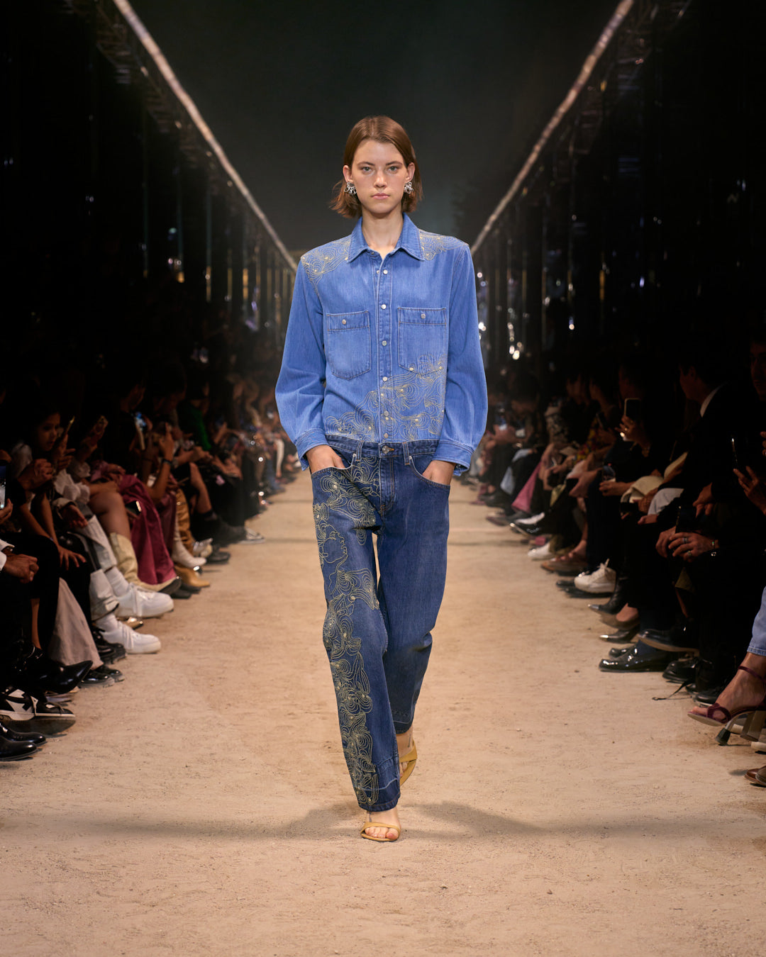 Over denim looks, gold thread constellation patterns introduce a mystical and celestial dimension to this new season.
