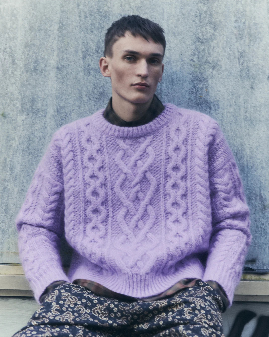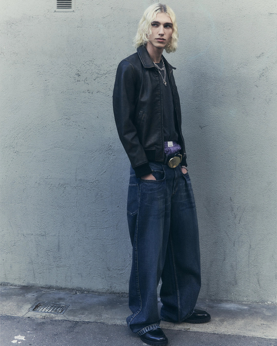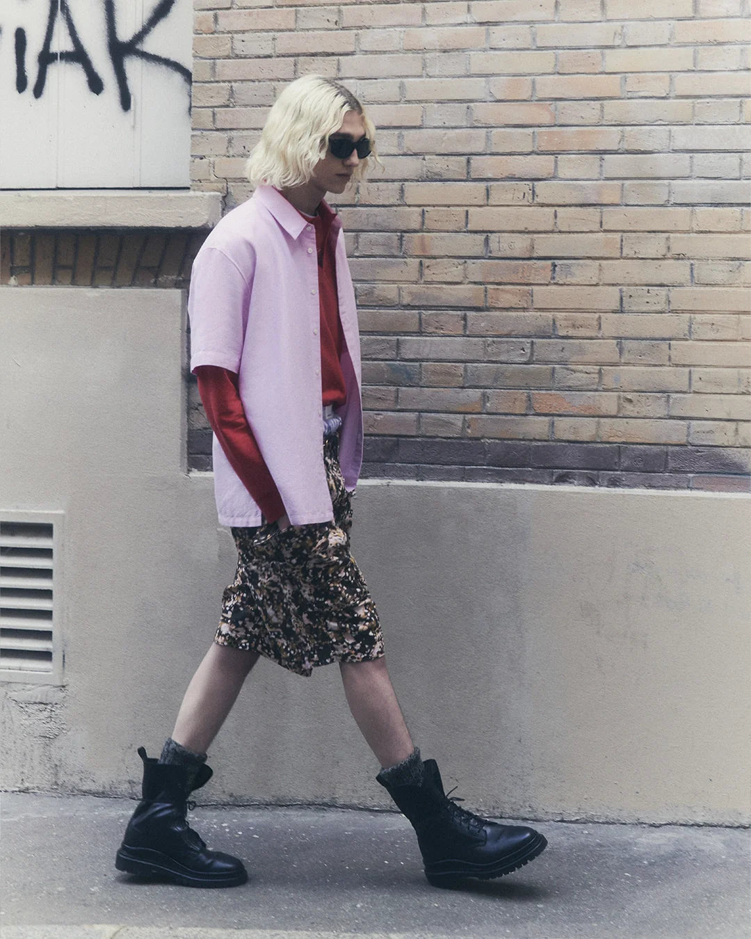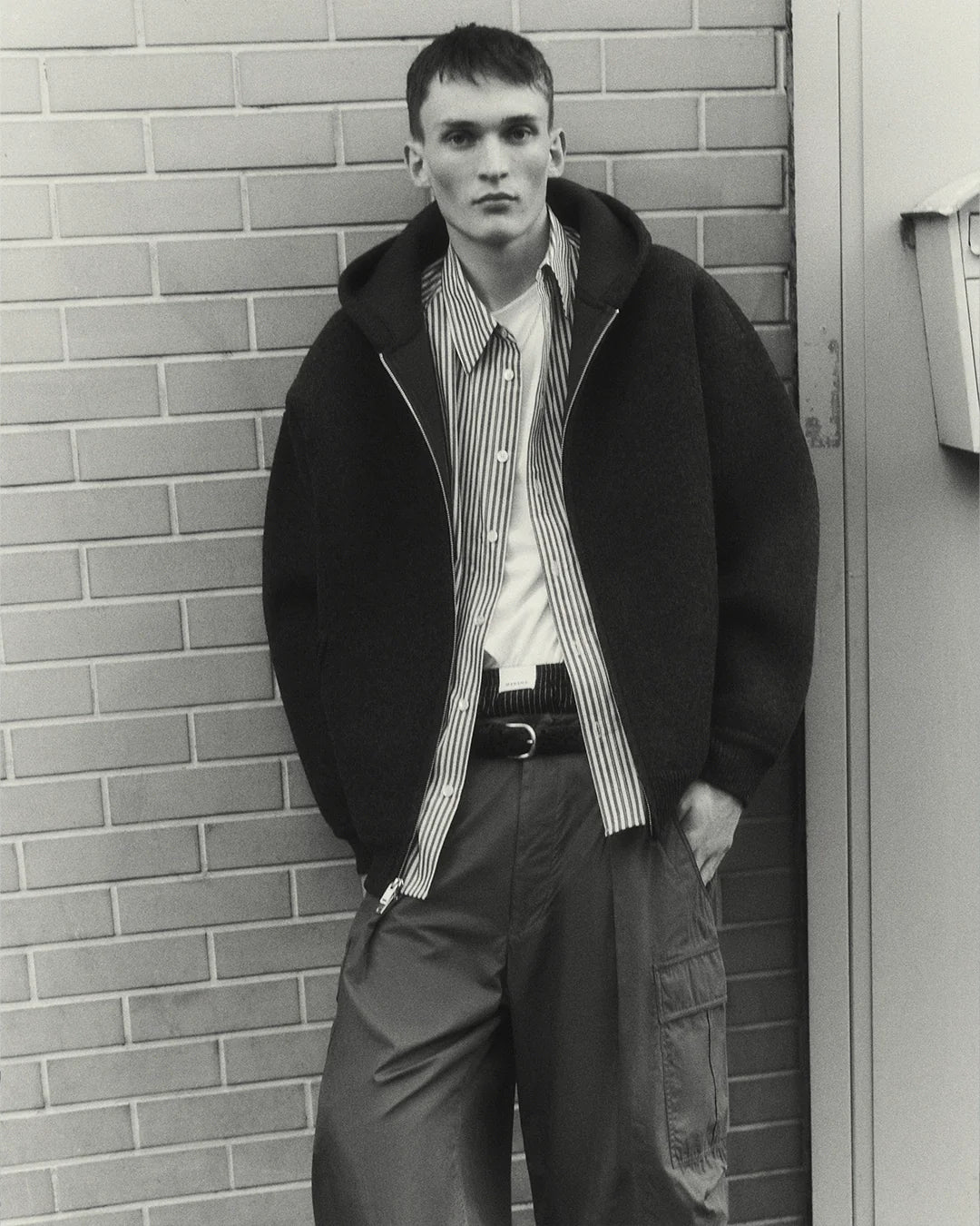It’s everything but a total look. A chaotic harmony organically emerges from this timeless ensemble of extremely diverse items. Preppy, grunge and tailoring items connect through a common underground irreverence in playing with volumes and fabric combinations.