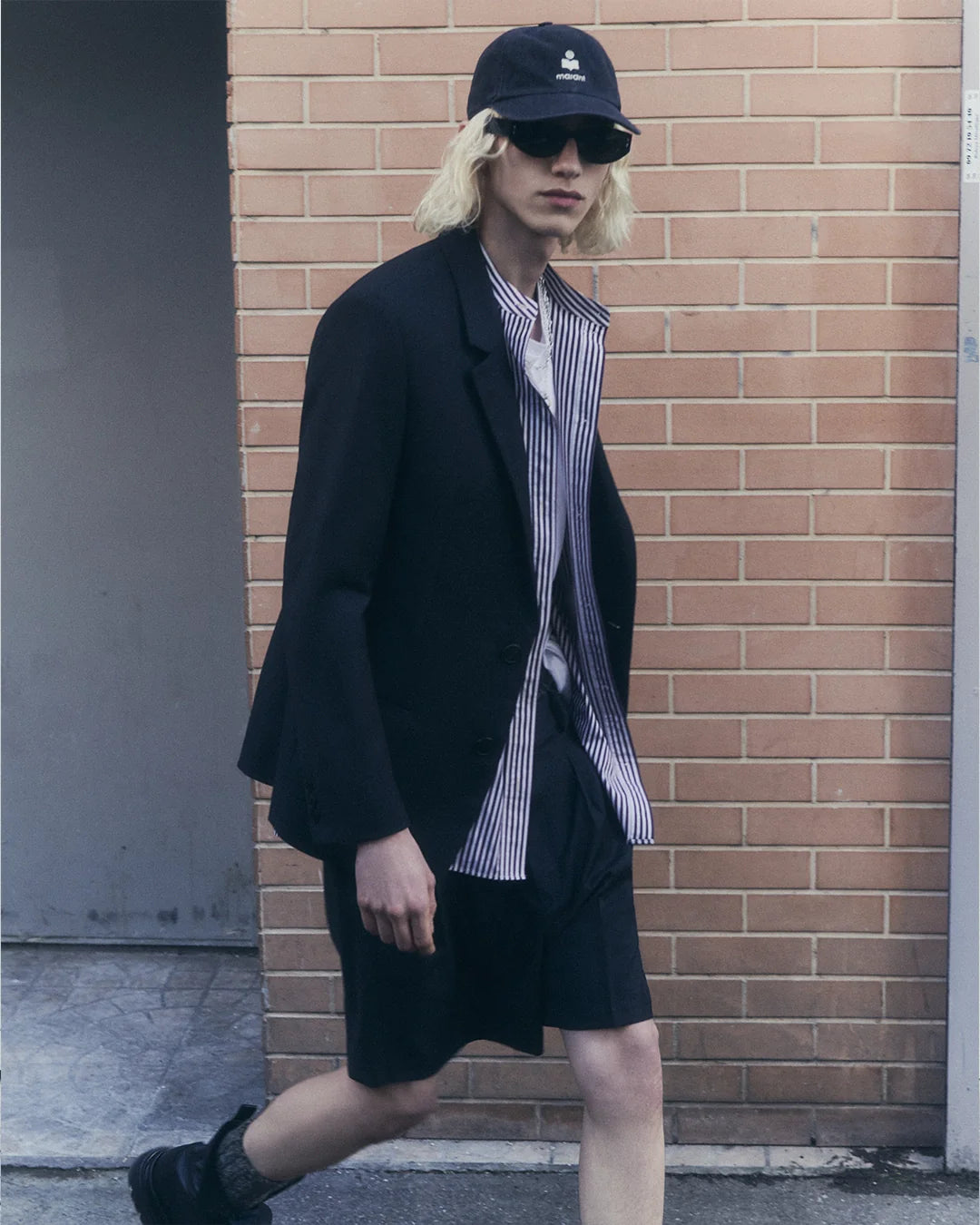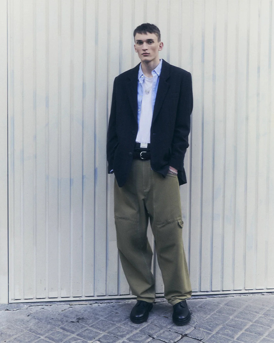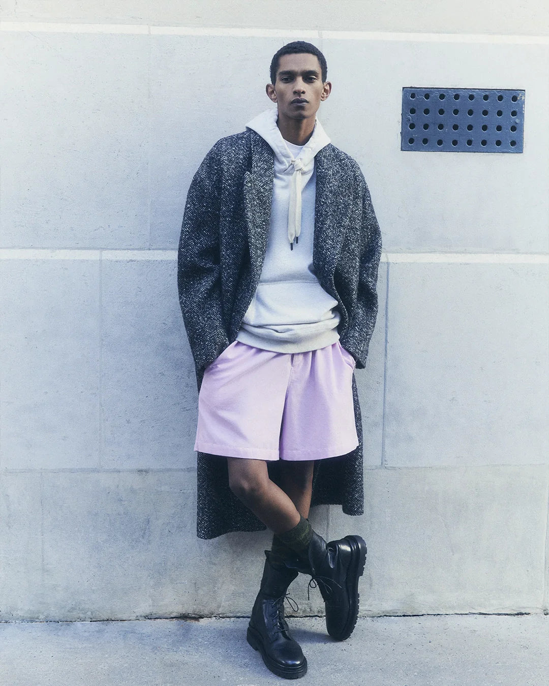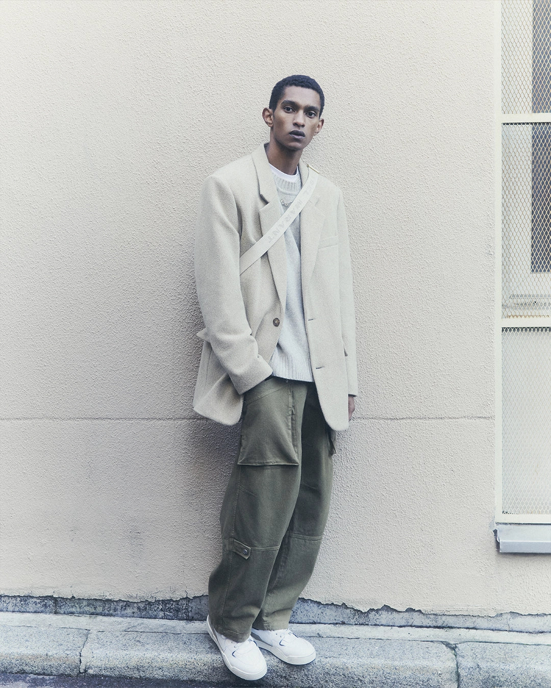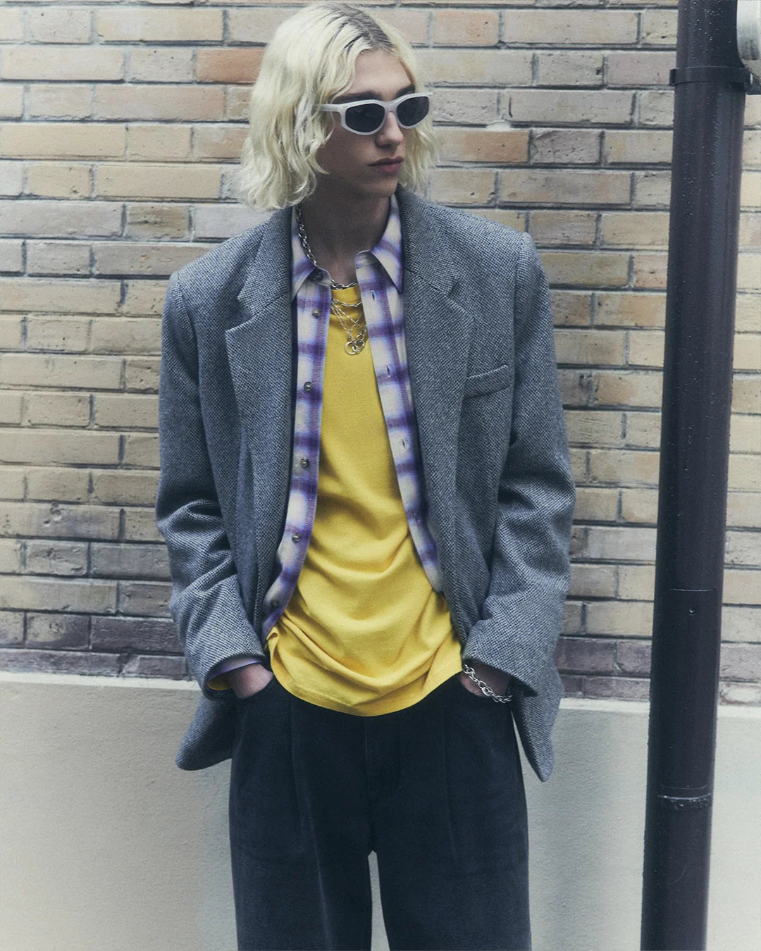 It’s everything but a total look. A chaotic harmony organically emerges from this timeless ensemble of extremely diverse items. Preppy, grunge and tailoring items connect through a common underground irreverence in playing with volumes and fabric combinations.