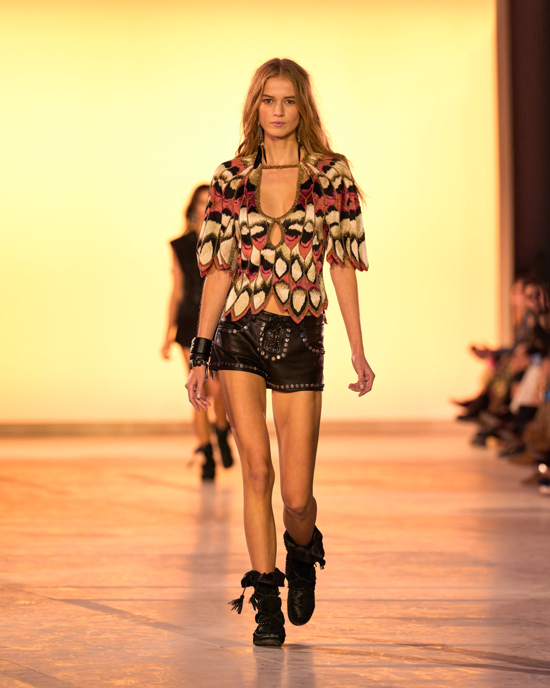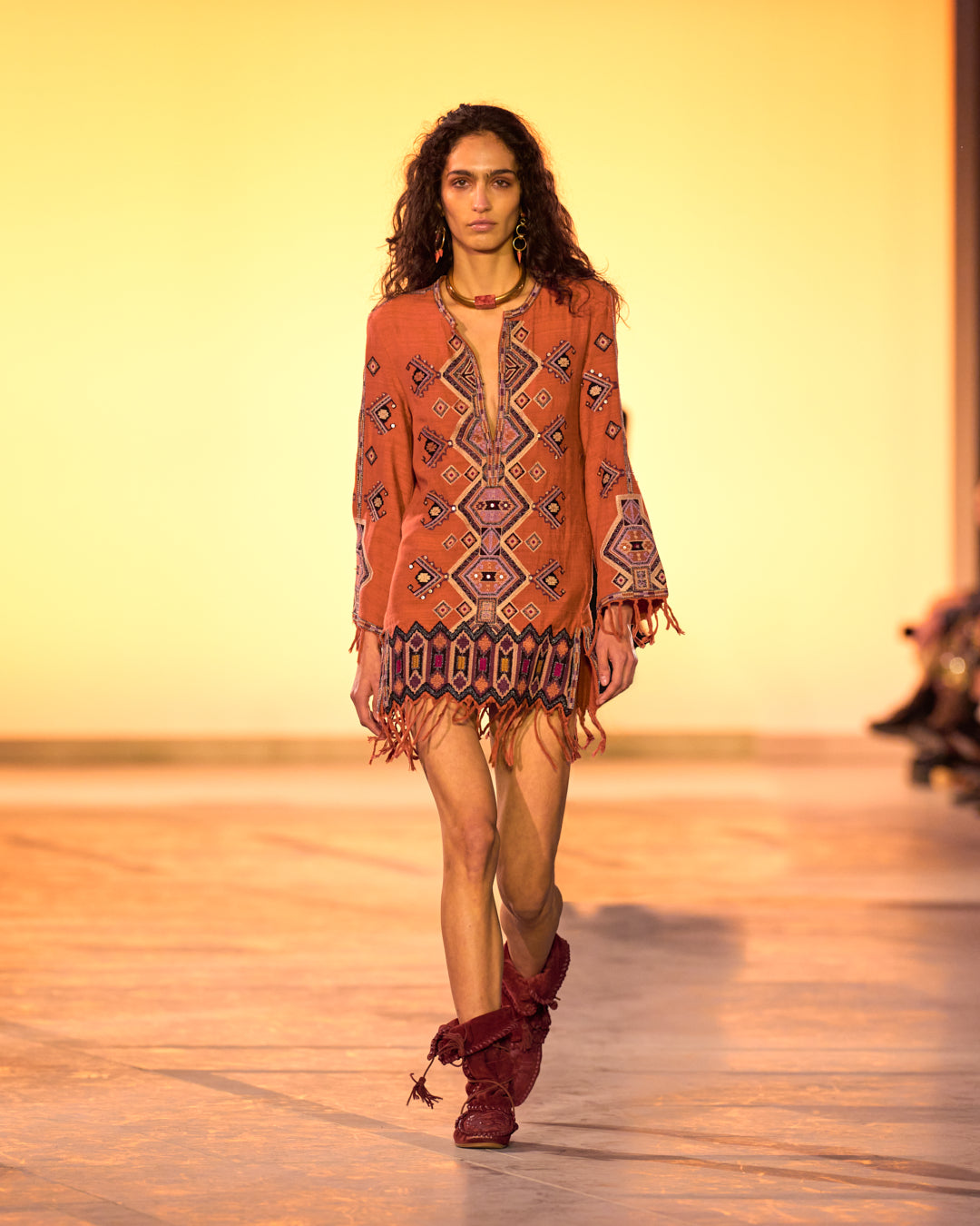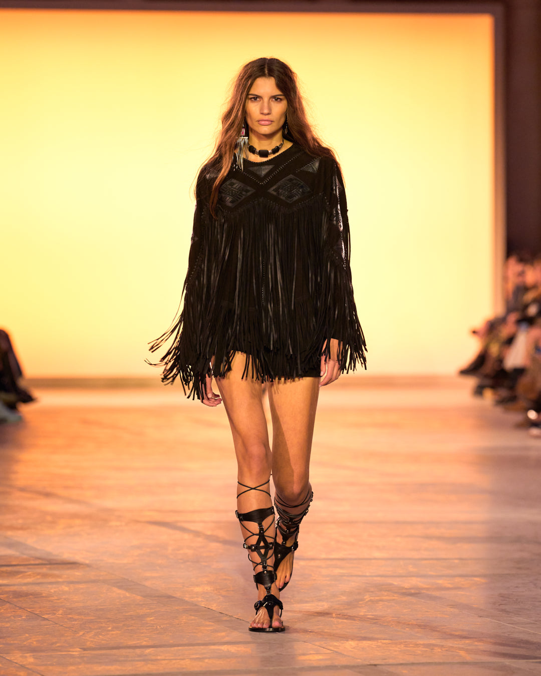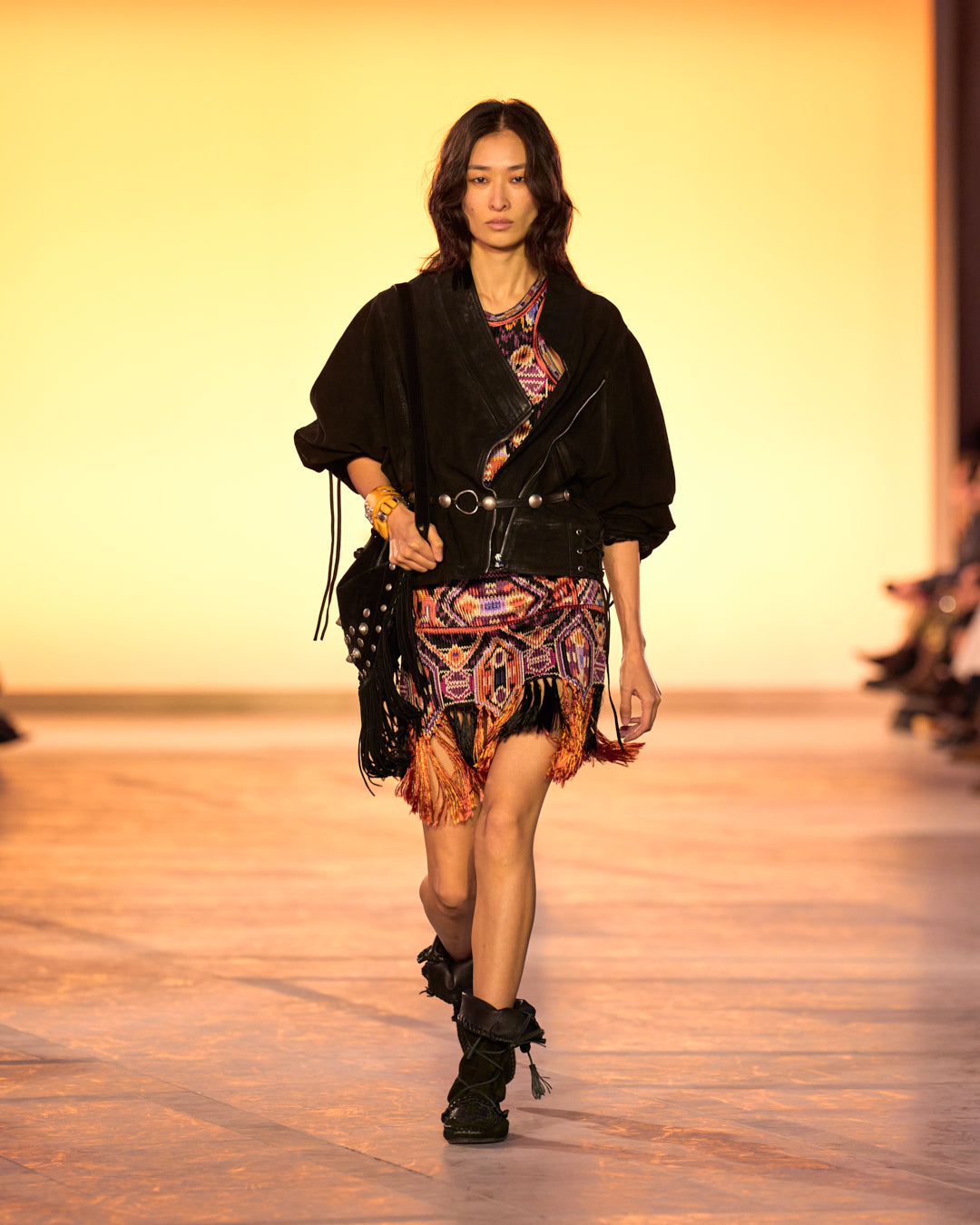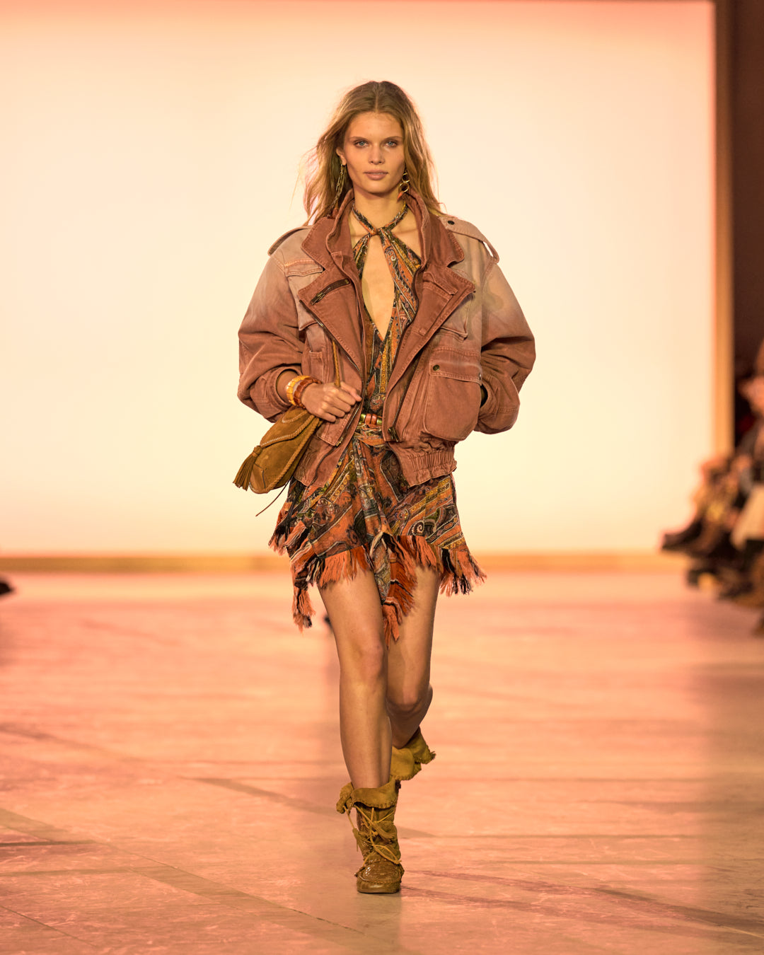 Fringes take on the appearance of feathers, and dresses seem to be crafted from butterfly wings. A tropical inspiration meets the artisanal spirit, a signature of Isabel Marant.
