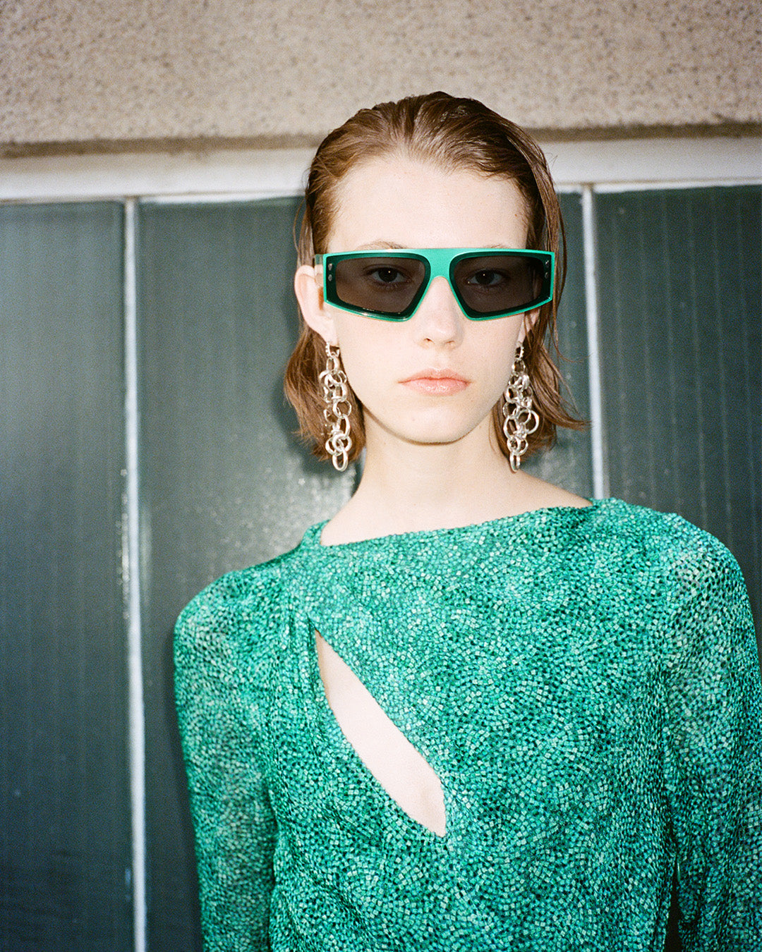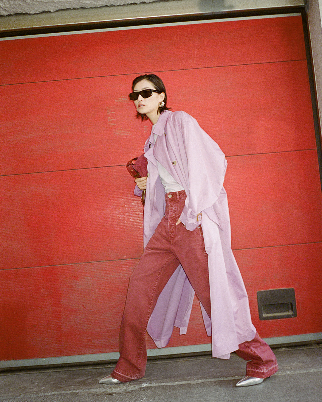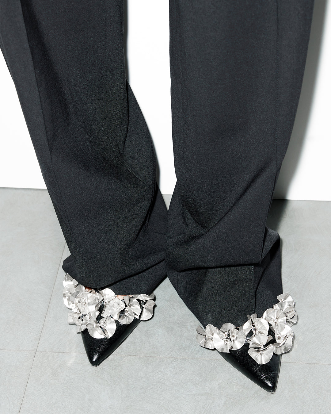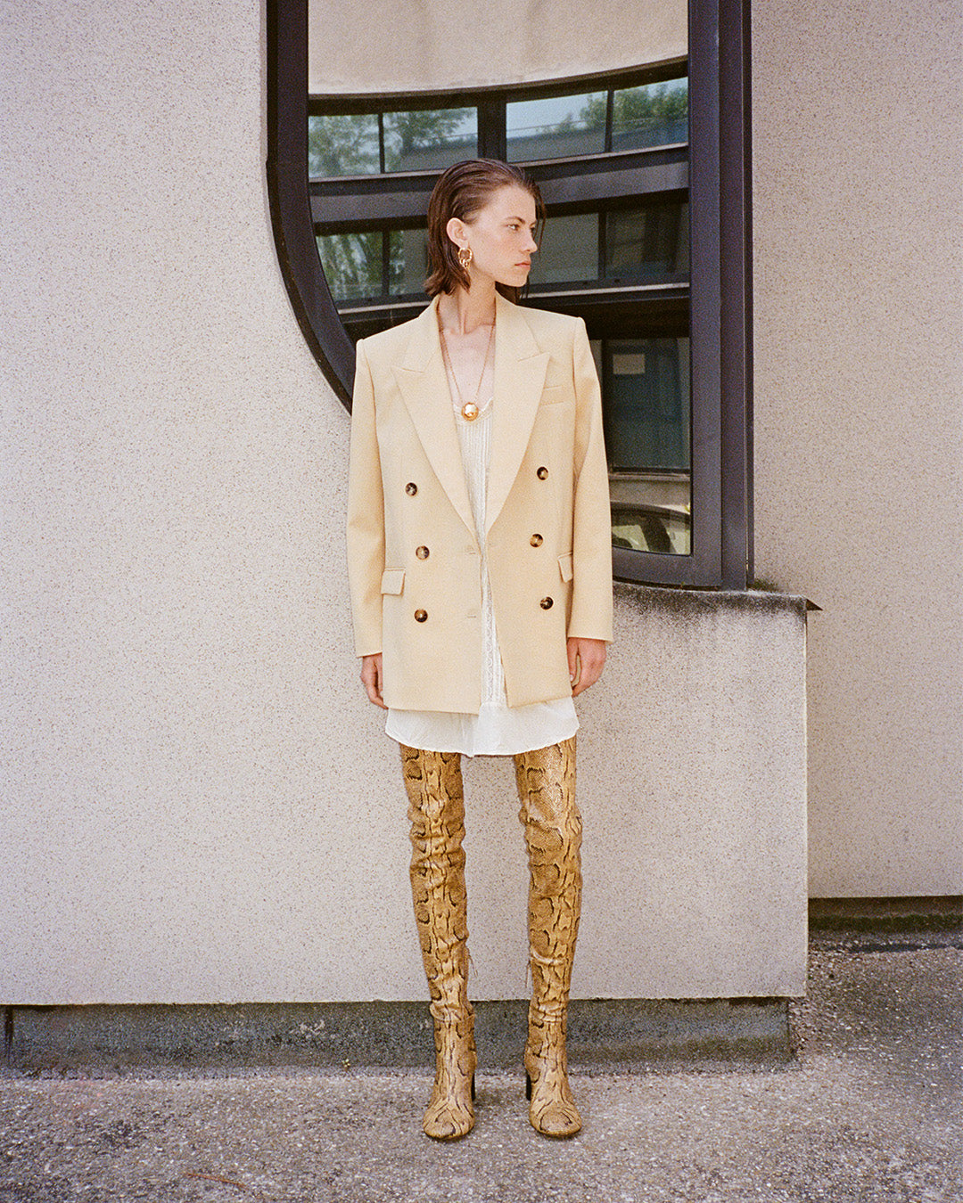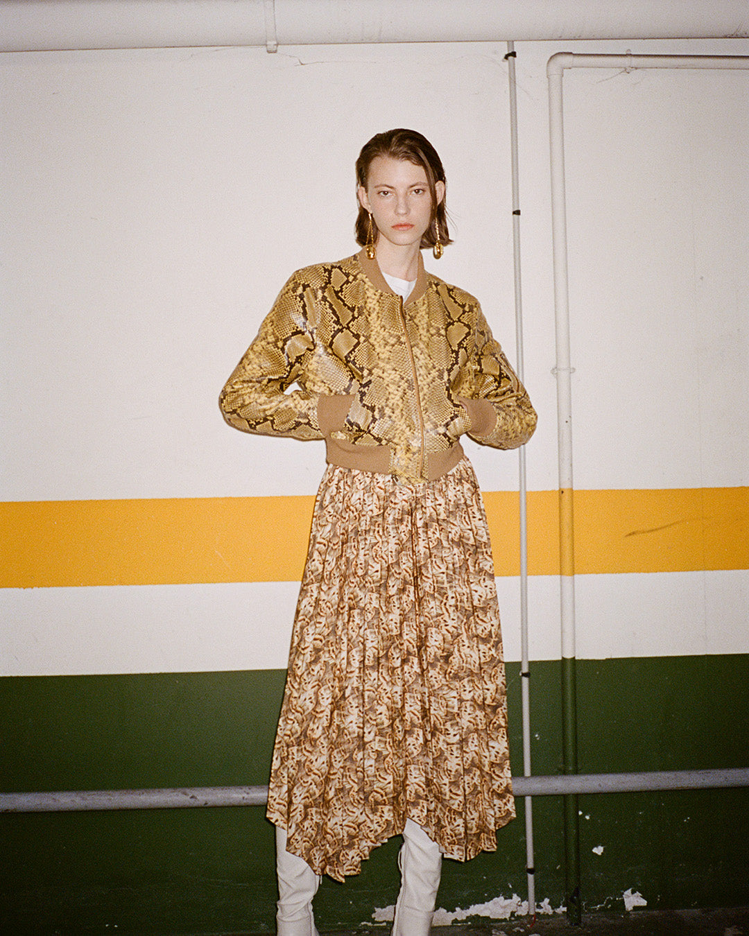 This girl in python mini shorts and double breasted blazer alludes to early Y2K aesthetics. They are imbued with Isabel Marant’s romanticism: feminine hues and motifs, subtle ruffles and precious embroideries.