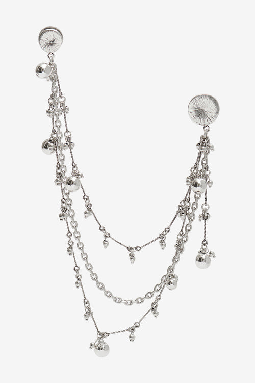Broche doble de latón y estaño con cadenas y cuentas plateadas