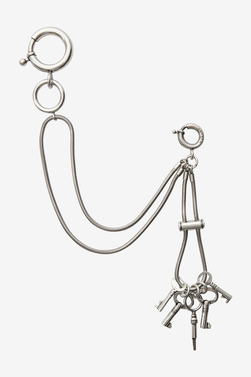 Modelo con doble anilla, mosquetón con logo «Marant» grabado, cadena y charms para llaves