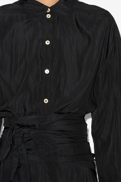 Abito a camicia lungo in crêpe a tinta unita