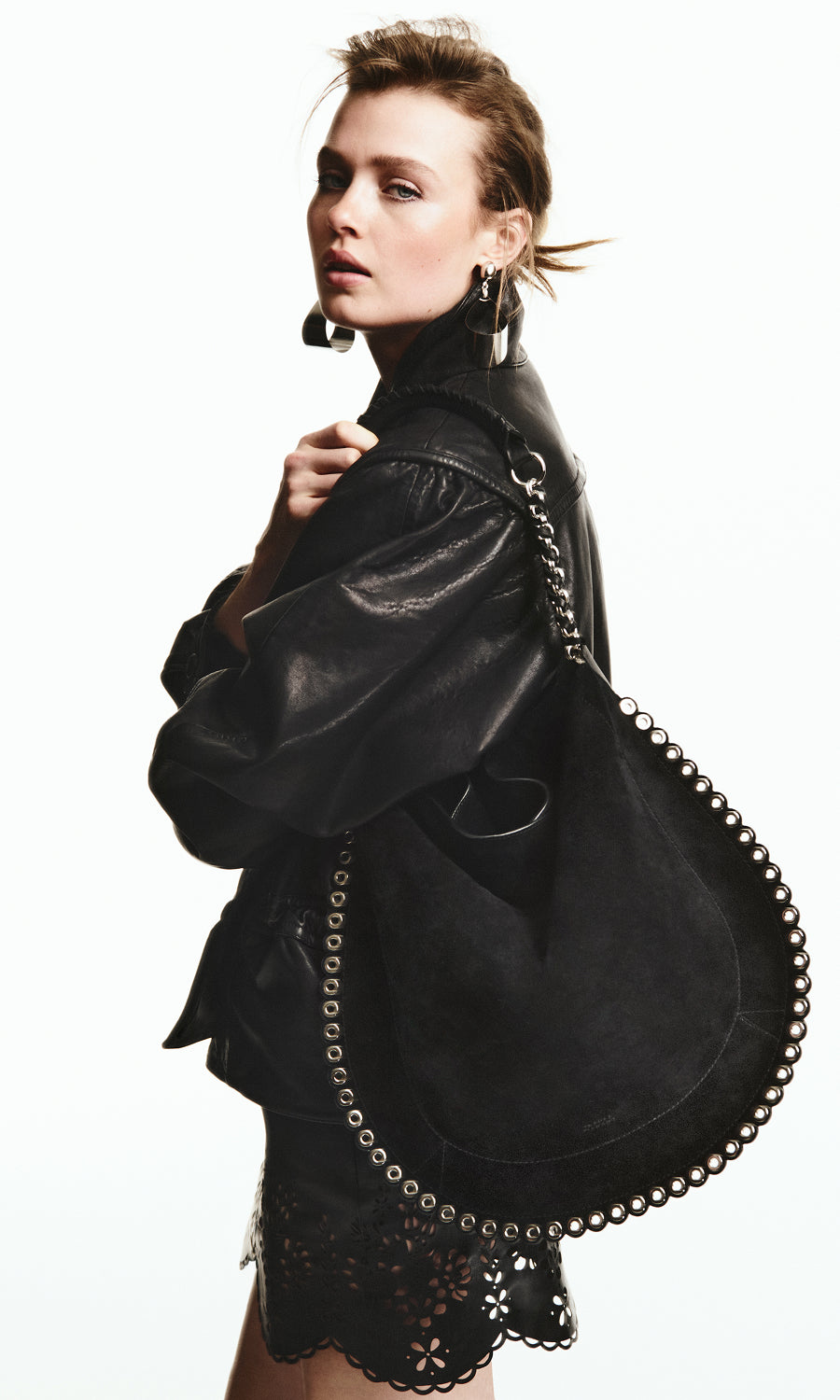Innamorati della borsa Oskan Moon, un must-have che presenta l'estetica distintiva con borchie di Isabel Marant, con finiture in morbido cuoio o camoscio adornate da dettagli unici.