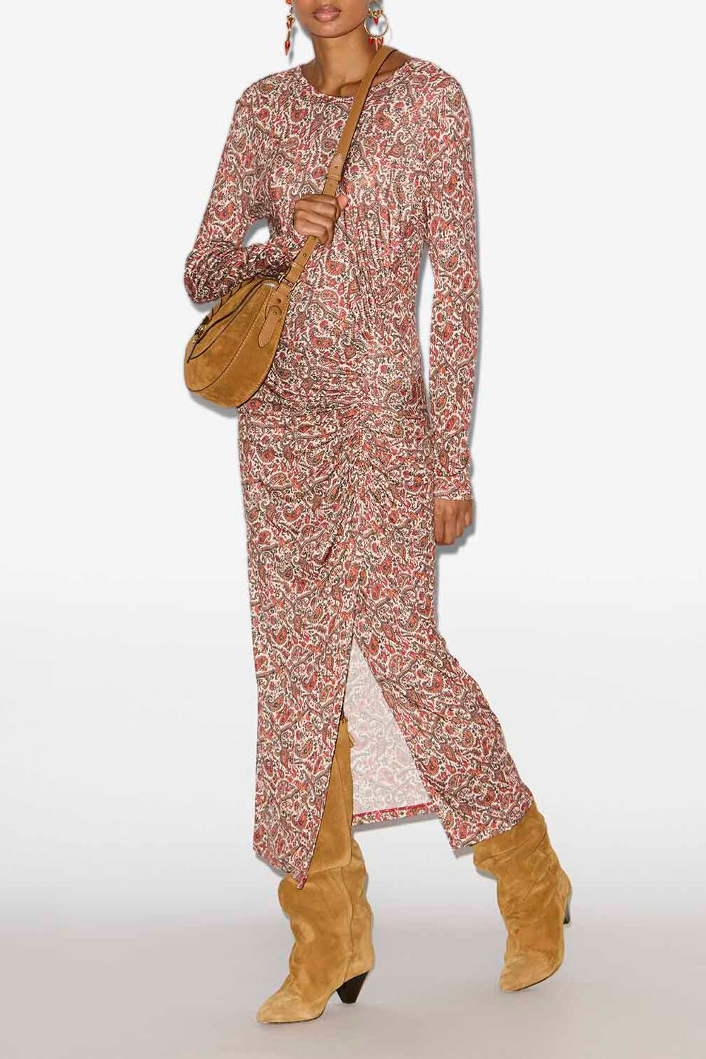 벽지 패턴 프린트 & 드레이프 저지 소재의 맥시 드레스